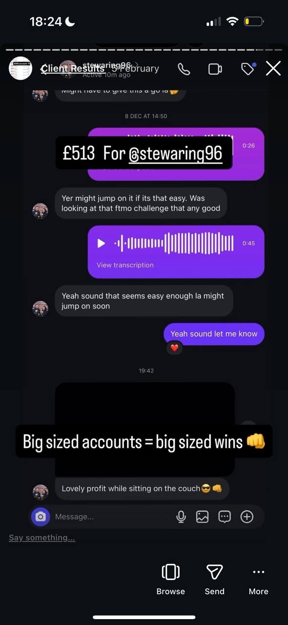 24/7 support from a 7 figured trader that will be personally assigned to you when you join our group. We will hold your hand every step of the way as our goal is to make you profitable.